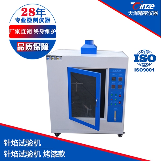 針焰試驗(yàn)儀是用規(guī)定尺寸(Φ0.9mm )的針狀燃燒器,通以特定燃?xì)?丁烷),以 45°角定時(shí)定向施燃試品,視試品是否引燃及持燃時(shí)間和燃燒長(zhǎng)度來(lái)評(píng)定設(shè)備內(nèi)部因故障條件造成的小火焰的著火危險(xiǎn)性。